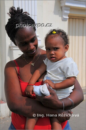 Pyšná matka se svou holčičkou v ulicích Pinar del Ría. Kuba