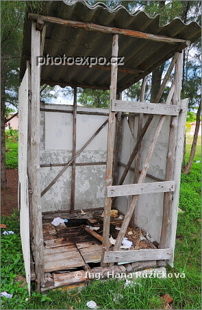 Chce se Vám na záchod? Na Playa Bailén místní plážové záchody doslova lákají k použití. Tento byl pánský. A jelikož jsem na ty záchodové historky, střihla jsem si zkušenost na tom dámském :=) A přežila. Kuba