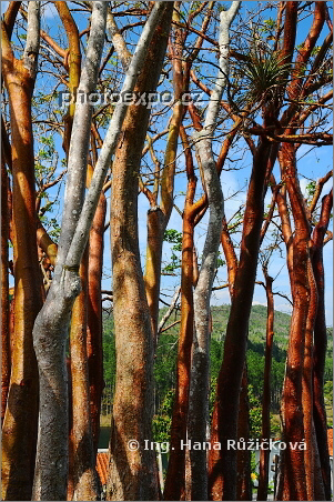 Shluk stromů na kopci tyčícím se nad eko-vesnicí Las Terrazas. Kuba
