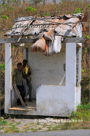 Že by zastávka autobusu? Ale kde je nějaké označení? Nebo snad přístřešek pro sluncem zemdlelé? Každopádně dva starší Kubánci v tomto architektonickém výtvoru vytrvale stáli po celou dobu, co jsme rozmlouvali s partou anglických cyklistů, tedy asi půl hodiny. Kuba