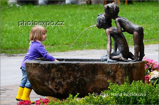 Živou holčičku zaujaly neživé "tryskající" děti před hotelem Weisenhof**** v Pertisau. Rakousko