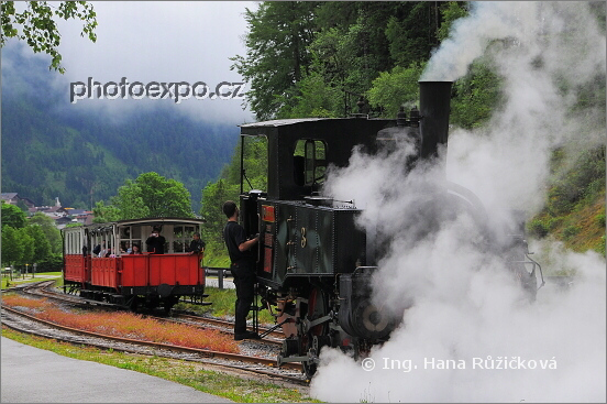 Parní lokomotiva se dvěma vagony jezdí na jednokolejné trati mezi Seespitzem, přístavem na Achensee, a Jenbachem. Je proto třeba ji připojovat na oba konce řady vagónů. Nyní právě dotlačila vagony pár metrů od stanice Seespitz, na krátký dvoukolejný úsek, a řadí se na druhou kolej, aby vagony objela a svým předkem!!! se připojila na začátek vlaku směr Jenbach ... viz následující foto. Rakousko