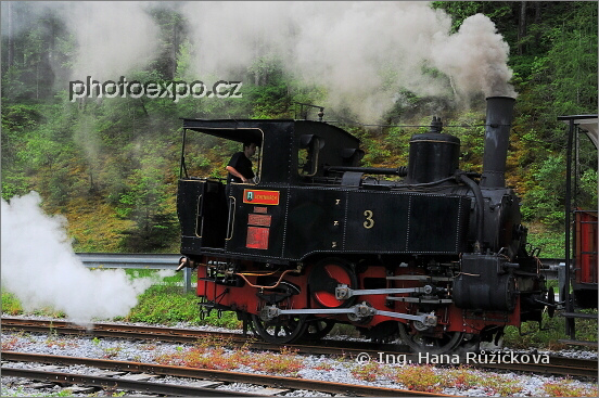 Z parní lokomotivy "tahající" půvabné červené vagony mezi Jenbachem a přístavem Seespitz na jezeře Achensee to opravdu kouří všemi směry :=) Zde je právě aktuálně připojena před "své" vagonky. A protože nemá možnost se na jednokolejné trati otáčet, může jezdit popředu jen směr Seespitz. Nyní ji však čeká jízda na Jenbach. Pojede tedy pozpátku a vagónky potáhne za sebou... Rakousko