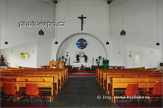 Interiér evangelického kostela v Pertisau v Rakousku.