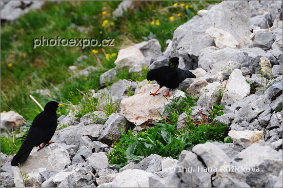 Společnost při putování mezi vrcholy Rofan (1840 m n.m.) a Gschöllkopf (2039 m n.m.) nám dělali tito černočerní opeřenci. Tyrolské Alpy, Rakousko.
