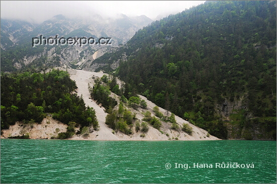 Písečné laviny na břehu Achensee, Rakousko.