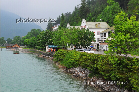 Břeh Achensee u přístavu Scholastika, kde jsme právě zastavili s parníkem Tirol, zajišťujícím dopravu po jezeře Achensee. Rakousko