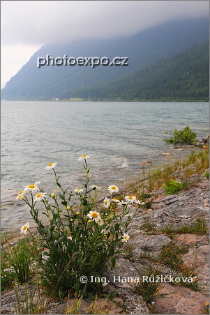 Kopretiny na břehu jezera Achensee v Rakousku.
