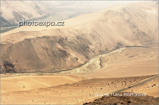Pouštní krajina v oblasti Pampa Colorada cestou z města Arica do NP Lauca. Chile
