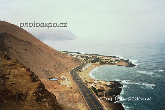 Pacifik pohledem s vyhlídky nad městem Arica, Chile.