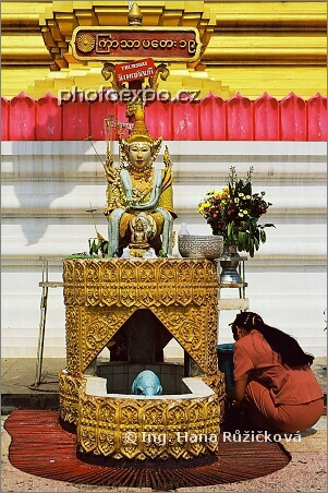 Věřící u pagody Wat Phra That Doi Tachileik. Tachileik, Myanmar.
