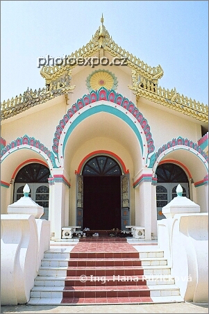 Chrám ve městě Tachileik. Zdroje uvádí, že se jedná o chrám Dhammayon, anglické verze pak Temple of Enrobed Elephant, tedy ve volném překladu "Oděný slon". Při vstupu je samozřejmě nutné se zout! Tachileik, Myanmar.