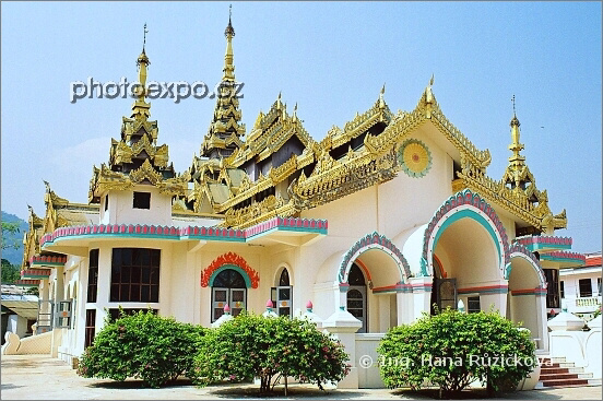 Chrám ve městě Tachileik. Zdroje uvádí, že se jedná o chrám Dhammayon, anglické verze pak Temple of Enrobed Elephant, tedy ve volném překladu "Oděný slon". Tachileik, Myanmar.