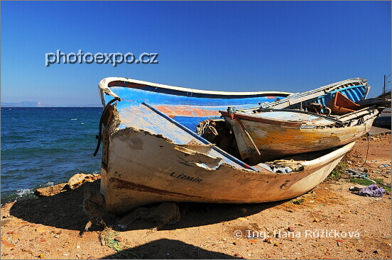 2 v 1 aneb malá loď ve velké lodi "tuli tuli". Detaily od jihovýchodního "úpatí" východních pobřežních hradeb pevnosti/kastra. Hlavní město Chíos, Řecko - Chíos.