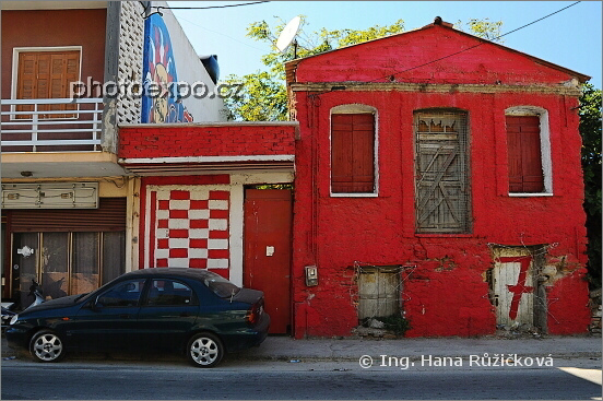 Cesta od severního rohu východních hradeb pevnosti/kastra k větrným mlýnům směr Vrontados. No není ta červená roztomilá ;=) Hlavní město Chíos, Řecko - Chíos.