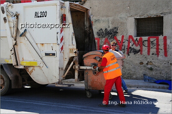 Popeláři cestou od severního rohu východních hradeb pevnosti/kastra k větrným mlýnům směr Vrontados. Hlavní město Chíos, Řecko - Chíos.