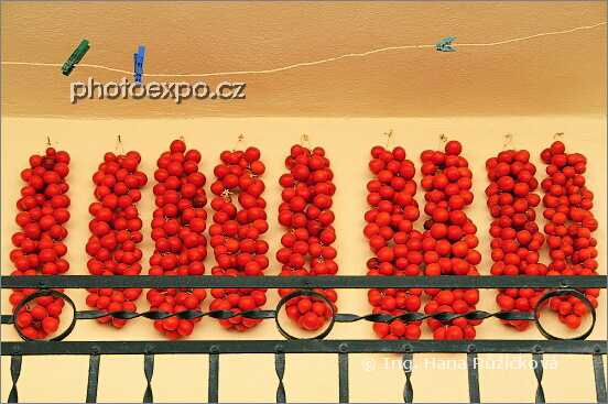 Sušení rajčat v mastixové vesnici Pyrgi. Řecko - Chíos.