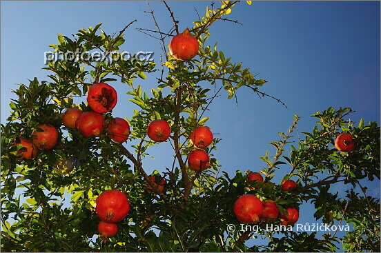 Je libo ochutnat granátové jablko? Na ostrově Chíos to můžete na každém kroku. Zde je keř s jablky ve vesnici Pyrgi. Řecko - Chíos.