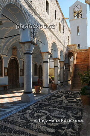 Exteriér kostela Taxiarchis, největšího na ostrově Chíos ve starobylé mastixové vesnici Mesta. Řecko - Chíos.