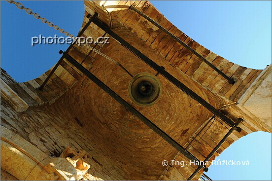 Detail zvonice kostela Taxiarchis nad vstupní branou do areálu svatostánku, ve starobylé mastixové vesnici Mesta. Řecko - Chíos.