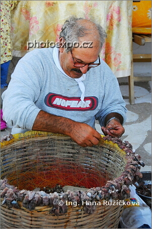 Rybář připravující návnady. Aghia Ermioni, Řecko - Chíos.