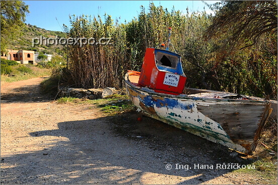 Loď na suchu v přístavu Limenas v zátoce Mesta. Řecko - Chíos