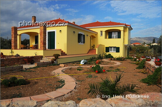 Jedna z nových luxusních vil v oblasti Kambos proslavené pěstováním citrusových plodů a honosnými vilami. Řecko - Chíos