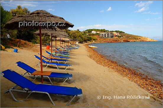 Karfas - turistické letovisko na východě ostrova a jeho pláž. Řecko - Chíos.