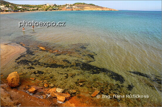 Karfas - turistické letovisko na východě ostrova a jeho pláž. Řecko - Chíos.