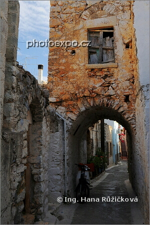 Starobylé úzké uličky ve vesnici Lithi u západního pobřeží ostrova. Řecko - Chíos.