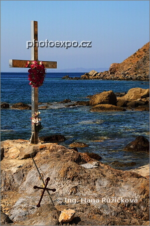 Křížek u místa mučednictví (Martyrdom) a u svaté studánky (Hagiasma). Řecko - Chíos.
