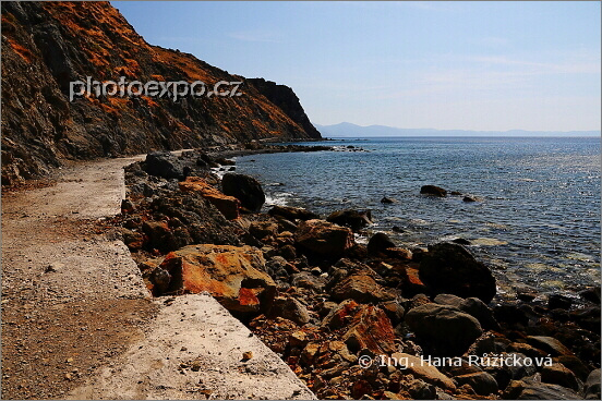 Cesta od pláže Aghia Makrela po úbočí skal k místu mučednictví (Martyrdom) a ke svaté studánce (Hagiasma). Řecko - Chíos.