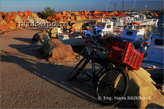 Přístav v zapadajícím slunci jižně od Chía před Karfasem. Řecko - Chíos