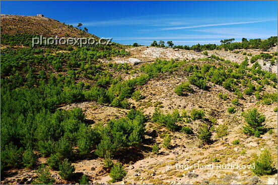 Krajina piniových borovic na cestě mezi vesnicí Pityos a klášterem Moundhon Moni (Dhiefcha). Řecko - Chíos