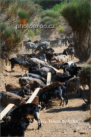Krmení koz - a že se perou - na cestě od kláštera Moundhon Moni (Dhiefcha) k vesnici Fita. Řecko - Chíos