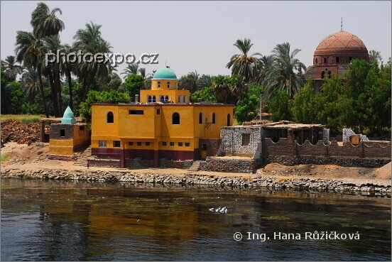 Vesnický život na pobřeží Nilu. Egypt