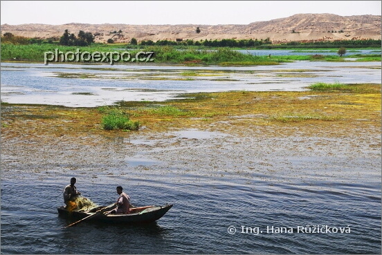 Rybáři v nádherné nilské krajině. Egypt