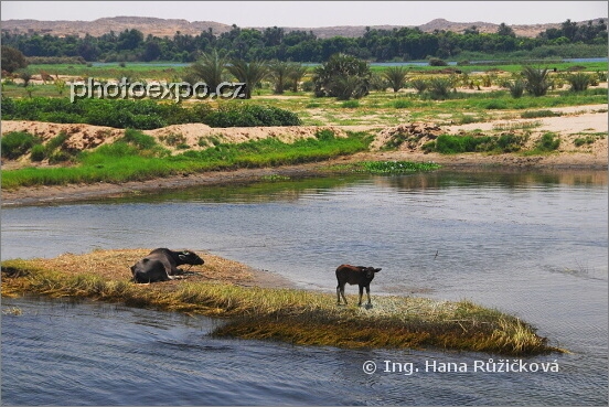 Břehy Nilu jsou domovem nejen lidí, ale i zvířat a to včetně těch domácích. Kráva a telátko odpočívající v žáru slunce u chladivých vod životodárného Nilu. Egypt
