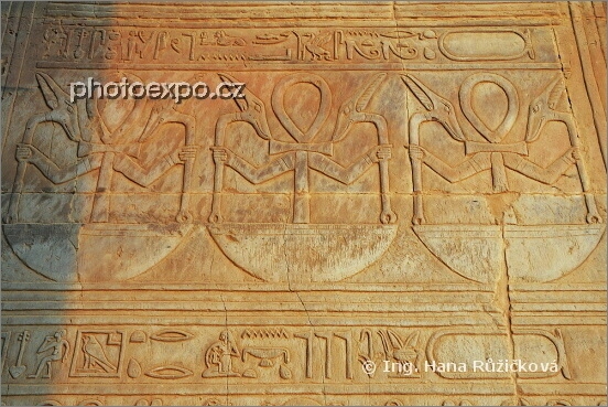 Anch neboli Nilský kříž bývá často motivem nástěnných reliéfů v egyptských chrámech. Je symbolem života, nesmrtelnosti, narození a znovuzrození. Jeho tvar připomíná lidské tělo s hlavou a rozpaženýma rukama. Náš průvodce Shaban nám však také říkal, že je symbolem Egypta a Nilu - hlava znamená nilskou deltu, svislá čára samotný Nil a jeho "dvě ruce" pak symbolicky znázorňuji Horní a Dolní Egypt. Tento reliéf jsem vyfotila v chrámu v Kóm Ombo. Egypt