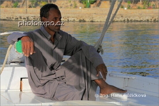 Náš núbijský lodivod feluky, kterou jsme se proháněli po Nilu u Asuánu. Egypt