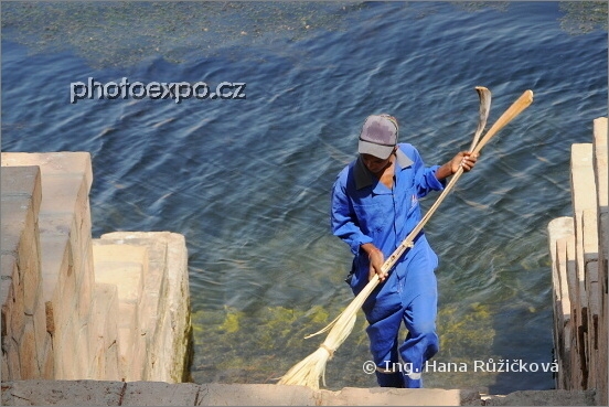 Jeden z mnoha metařů v botanické zahradě na Kitchenerově ostrově při práci. Všimněte si čím zametá! Takové nářadí u nás jen tak nepořídíte :=) Asuán, Egypt.