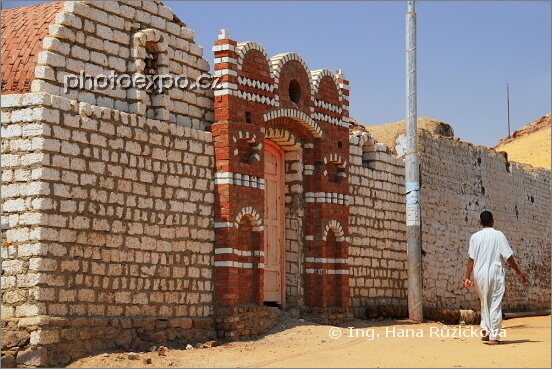 Núbijská vesnice na ostrově Sehel je typická svými staveními z různě barevných cihel, většinou červených a bílých, nebo naopak domy omítnutými a blankytně modrými. Egypt