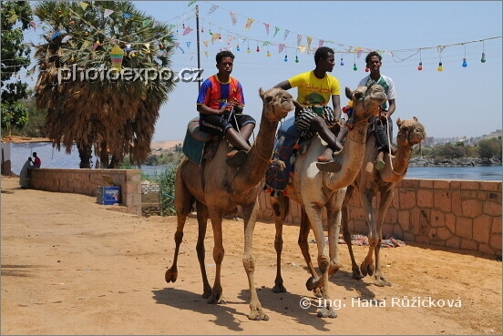 Savci v akci :=) Aneb núbijští hoši na svých velbloudech ve vesnici na ostrově Sehel. Egypt