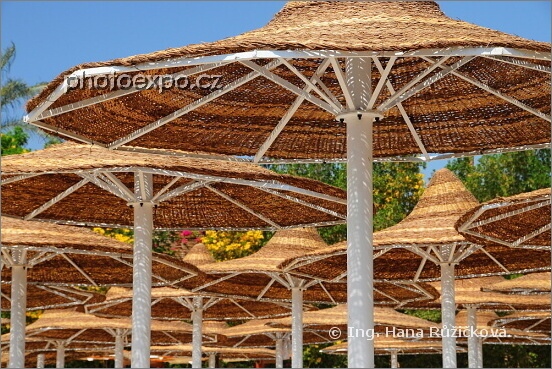 Slunečníky na pláži hotelu Prima Life Makadi*****, kde jsem strávila čtyři noci v oblasti Hurgada, mi učarovaly a tak jsem je fotila na mnoho zajímavých způsobů - zdola, z boku, shora... Egypt.