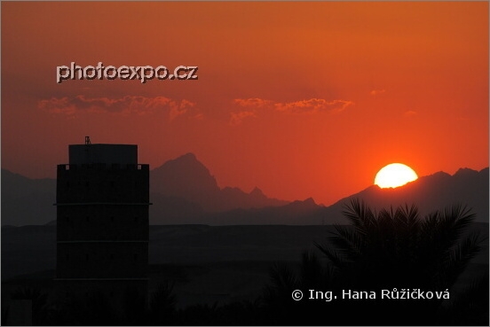 Západ slunce z resortu hotelu Prima Life Makadi***** v oblasti Hurgada. Egypt