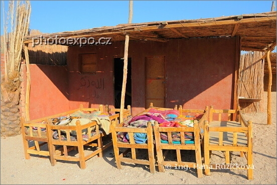 Proč spát v domě, když můžeme snít pod hvězdami. "Beduínská ložnice" před domem. Egypt