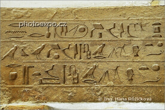 Nástěnné rytiny v hrobce Kara, hodnostáře z 6. dynastie zodpovědného za údržbu pyramid a obřady s nimi spjaté. Gíza, Káhira, Egypt.