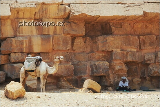 Turisté zajímající se o foto velblouda či svezení musejí počkat. Nyní je čas na čtení Koránu... Je Ramadán a Egypťan vydělávající prostřednictvím svého velblouda se usadil ve stínu Lomené pyramidy a začetl se do řádků svaté knihy. Dahšúr, Egypt.