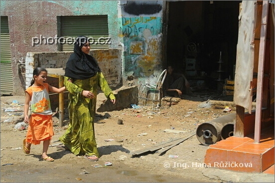 Jeden z mě velmi milých snímků z egyptských ulic. Je pořízen přes okno automobilu...a všimněte si chlapce, jak z temné dílny pozoruje kolemjdoucí... Egypt.