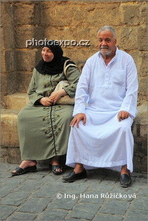 Starší egyptský pár v ulicích Káhiry. Egypt